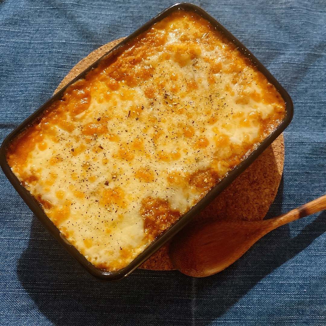 3様子を見てリゾットのようになったら火を止める。耐熱容器に移しチーズを乗せ、200℃のオーブンで5分から10分焼く(チーズが溶けて焦げ目がつけばOK)