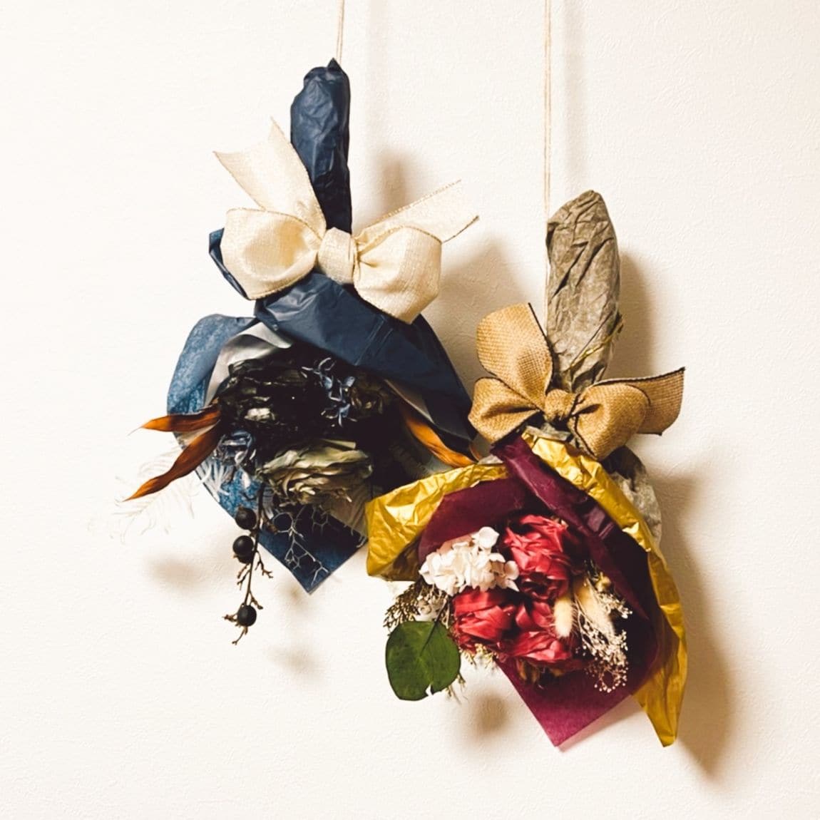 藍や鈴鹿墨などで染めたかんなくずでお花をつくり、ドライフラワーなどを合わせてスワッグにします。沢山の色のかんなくずをご用意します。新年を彩る華やかなスワッグをつくりましょう。香りが広がるスプレー付きです。サイズは作り手によって多少変わりますが、長さ40cmほどです。