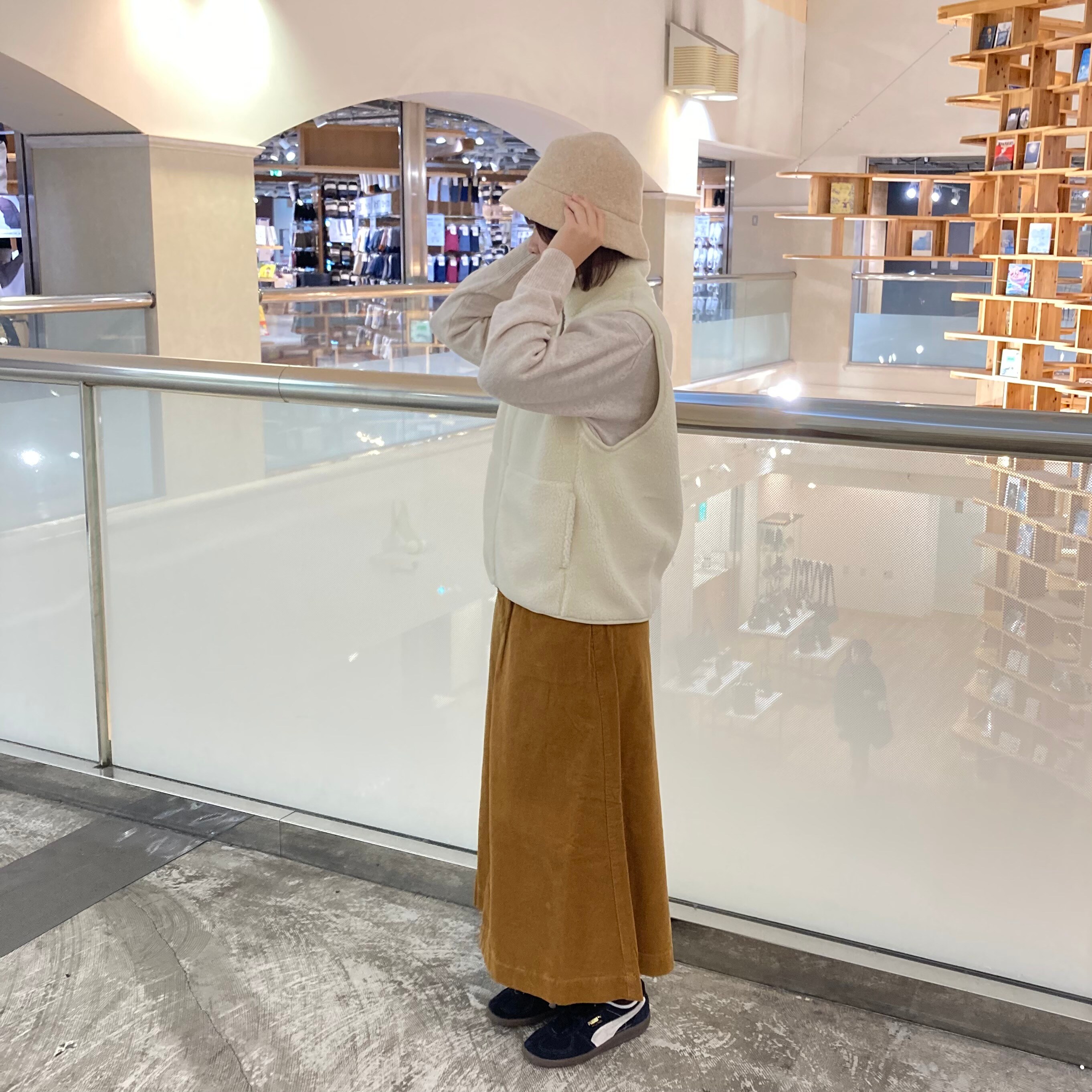 今回はお買い求めやすくなっているウールメルトンバケットハットを使った着こなしです。