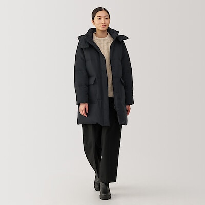 膨らむ力の大きい750フィルパワーの羽毛を使用。空気の層を作り軽く暖かいアイテムです。ロング丈でもごわつかず楽に着用して頂けます。