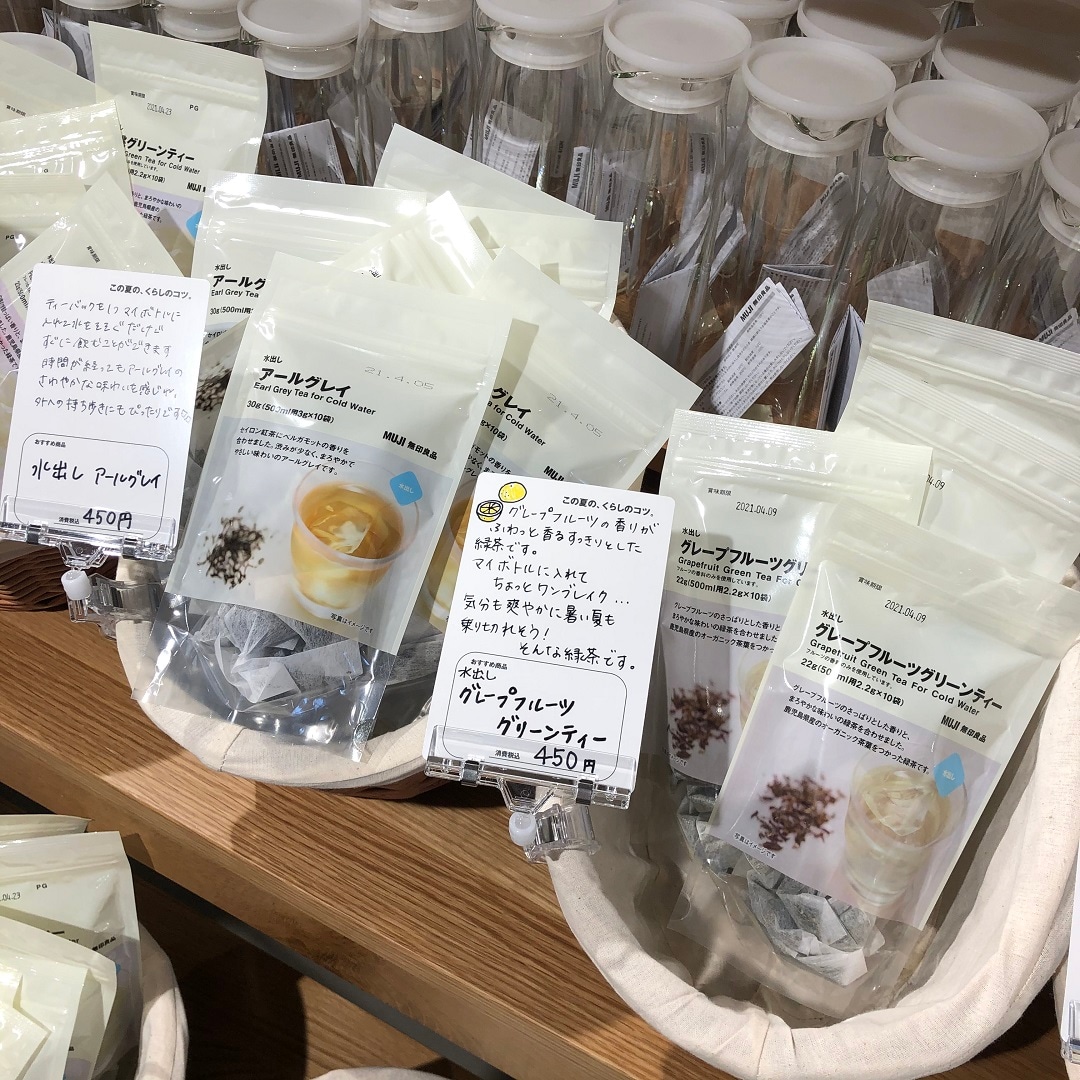 無印良品の水出しシリーズは全部で17種類あります。紅茶・ハーブティー・コーヒー・穀物茶など、いろいろ選べて味わえます。今回はその中でもスタッフ一押しの4種類をご紹介いたします!