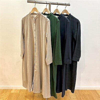 【マルヤガーデンズ鹿児島】なめらかな肌触り。両面起毛フランネルスタンドカラー長袖ワンピース|新商品 2025/09/23