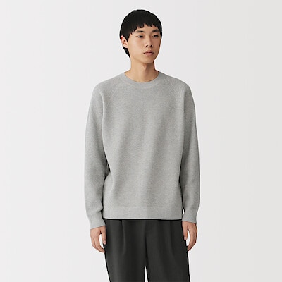 洗えるワッフル編みクルーネックセーター」をご紹介します。