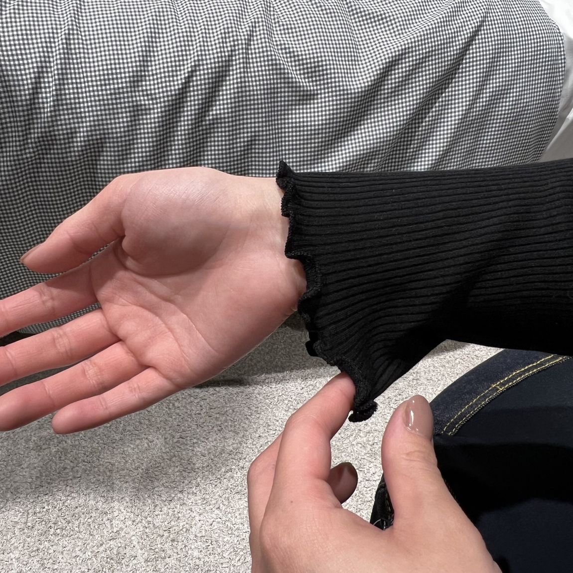 こちらのなめらかシリーズは、やや光沢があり、なめらかで心地よい肌触りでリラックスして着ていただけます。細リブ素材で伸縮性があり、生地の落ち感もあるので体のラインを拾いすぎず、ほどよくフィットします。