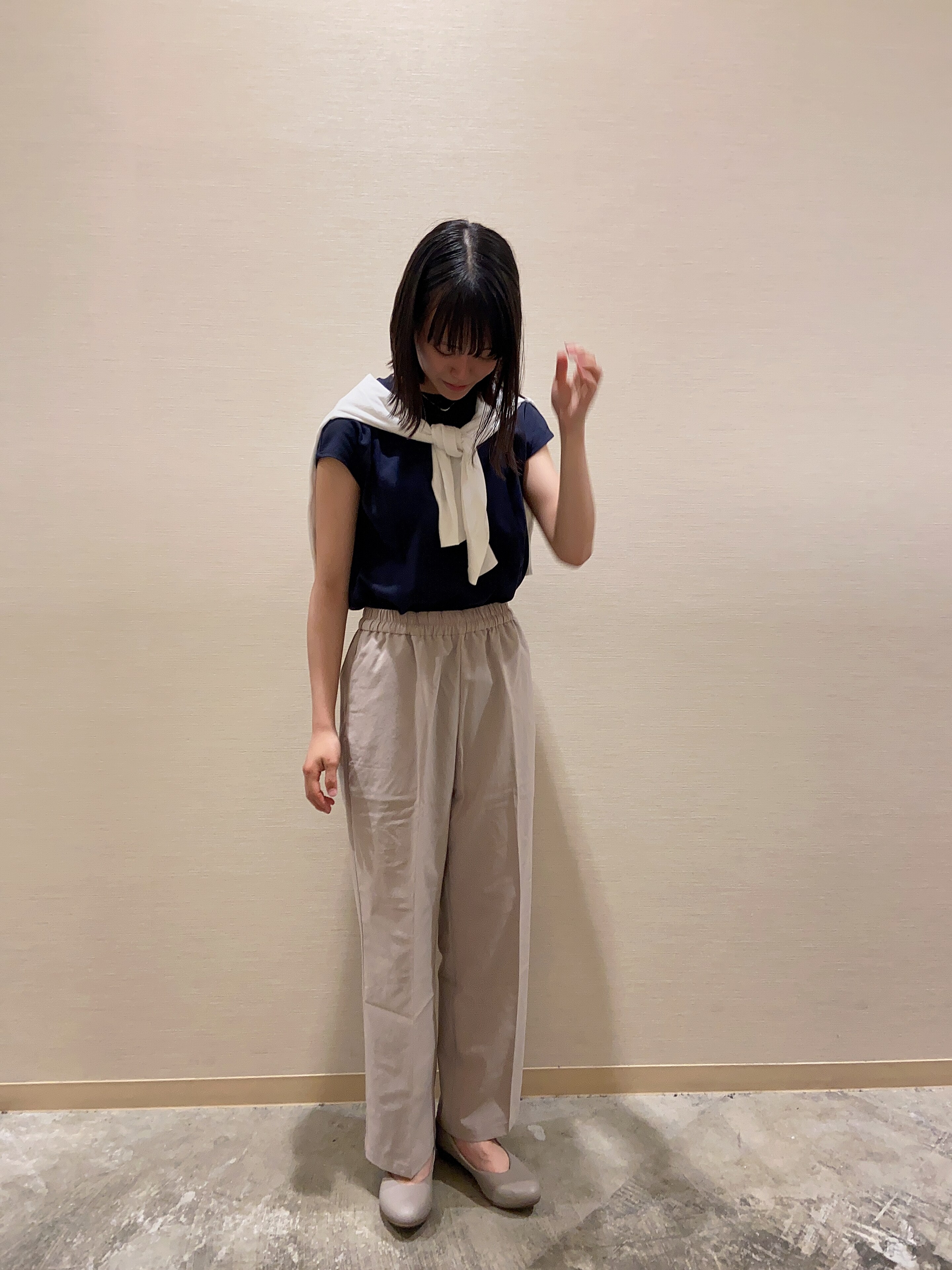 涼しげなフレンチスリーブTシャツとボトムスに、