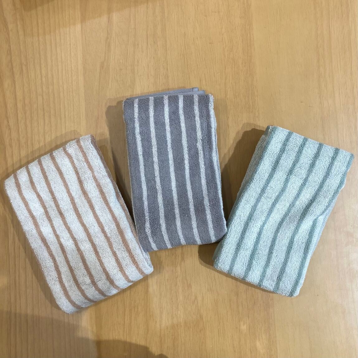 グレーストライプ、ピンクストライプ、グリーンストライプの3色で、
