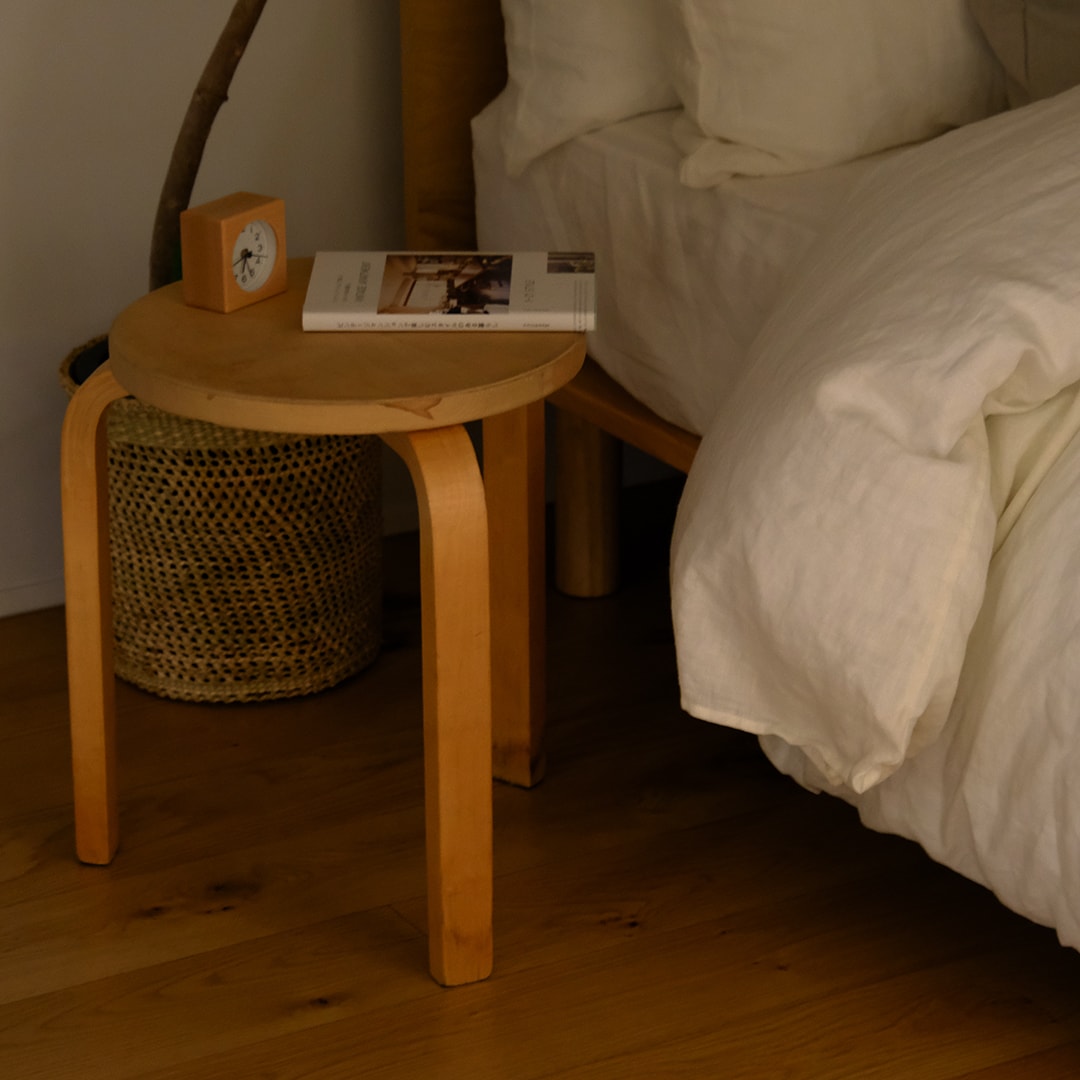 彼が残した数多くのプロダクトの中でも1933年にデザインされた「スツール60」は現代の「シンプル」なくらしにも全く違和感なく溶け込む「シンプル」デザインのお手本です。無駄を削ぎ落とした幾何学的な形と最小限の材料、新しい曲木の技術と手触りの良い木材が組み合わされています。