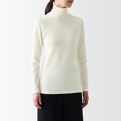 「婦人 ウール混ブークレポロセーター」は、ウールの風合いはそのままに軽くて包まれるような肌ざわりが特長です。