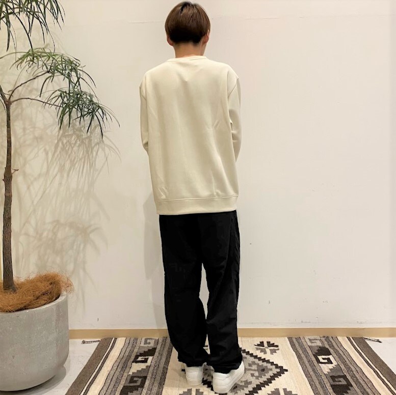 トップスとボトムスのセットアップは適度なハリ感とクッション性のある着心地が特長の、スウェット素材です。