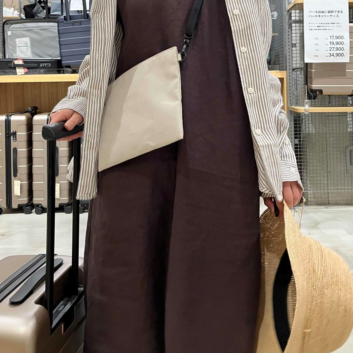 これからのおでかけシーズンにぴったりのスタイリングです。リラックスしたワンピースに、さらっと羽織れるシャツをあわせました。2〜3泊の旅行には36Lのハードキャリーケースがおすすめです。
