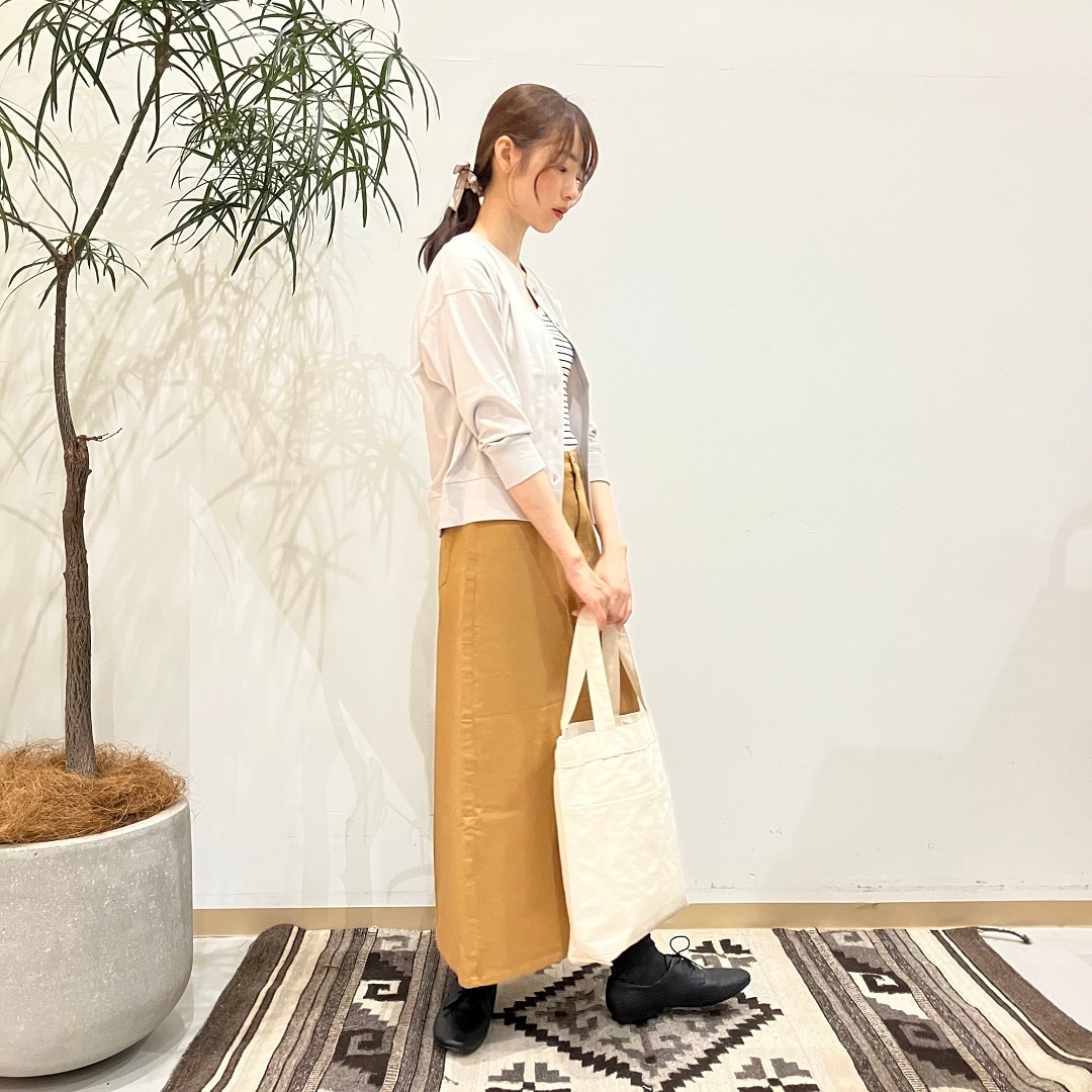たっぷりの丈でAラインが美しいスカートは、コーディネートの幅も広がりそうですね。