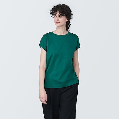 新商品のフレンチスリーブTシャツを使ったコーディネートです。さらりとした表面感で肌なじみの良い素材で仕立てた一着です。綿はアフリカの自然が育てました。