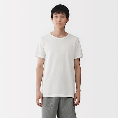 クルーネックの首元は通常の型よりもネック部分をすこし広めにして、Tシャツのネック部分から見えにくい仕様です、水口で一番選ばれているかたちです。