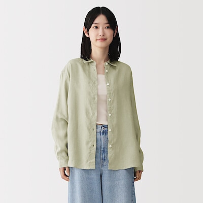 商品名:リネン 洗いざらし レギュラーカラー長袖シャツ