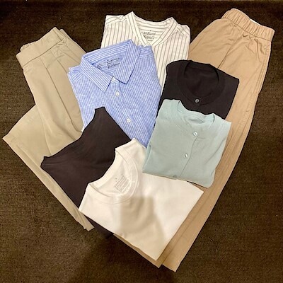 どこでもお出かけできるように、キレイめのコーディネートです。