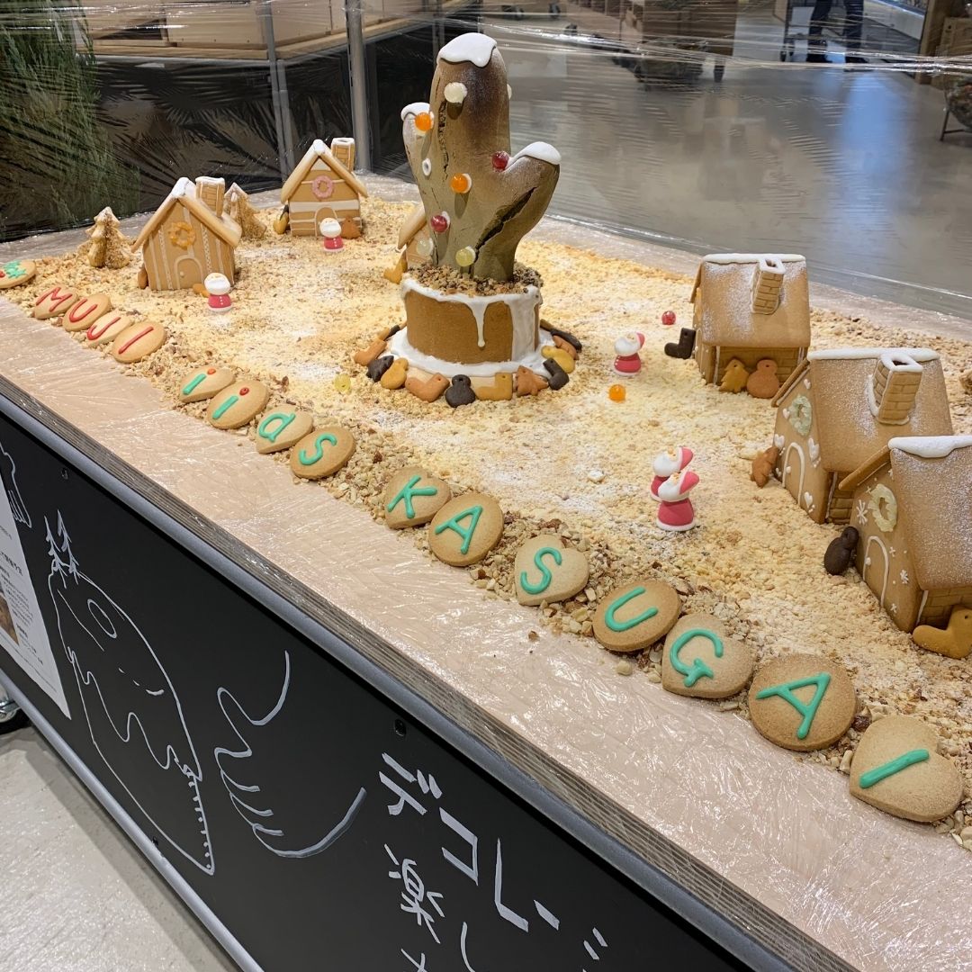 無印良品イーアス春日井では、クリスマスをイメージして、お菓子でジオラマを作りました。