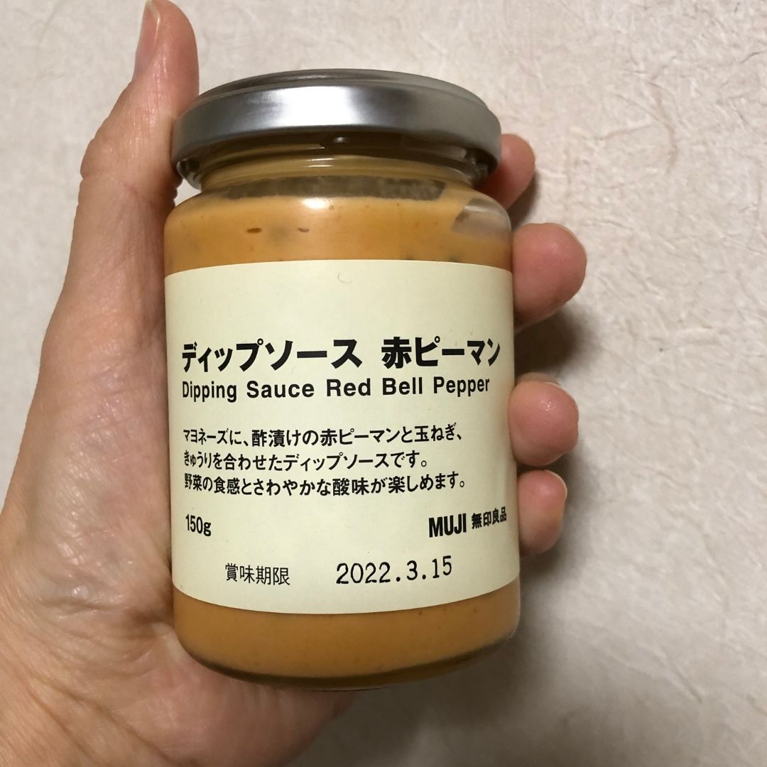 無印良品の『ディップソース 赤ピーマン』をつけて食べると、チンゲン菜の旨味をより強く感じられて美味しかったそうです。