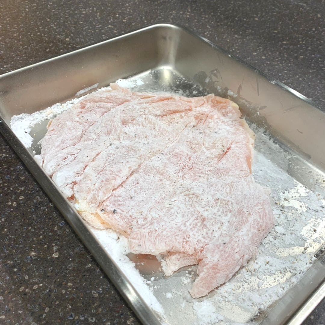 塩胡椒で下味をつけたら、片栗粉を全体につける。