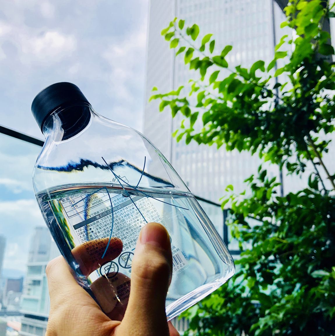 「自分で詰める水のボトル」は、フラットなデザインで手にフィットします。