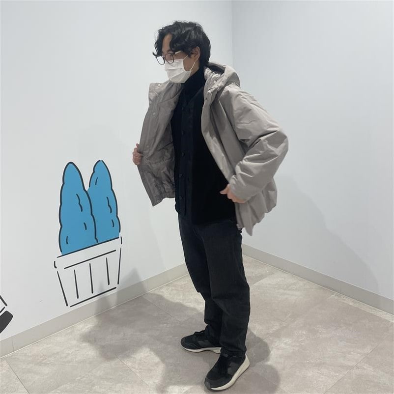 防風撥水中わたフードジャケットを使ったコーディネートです。