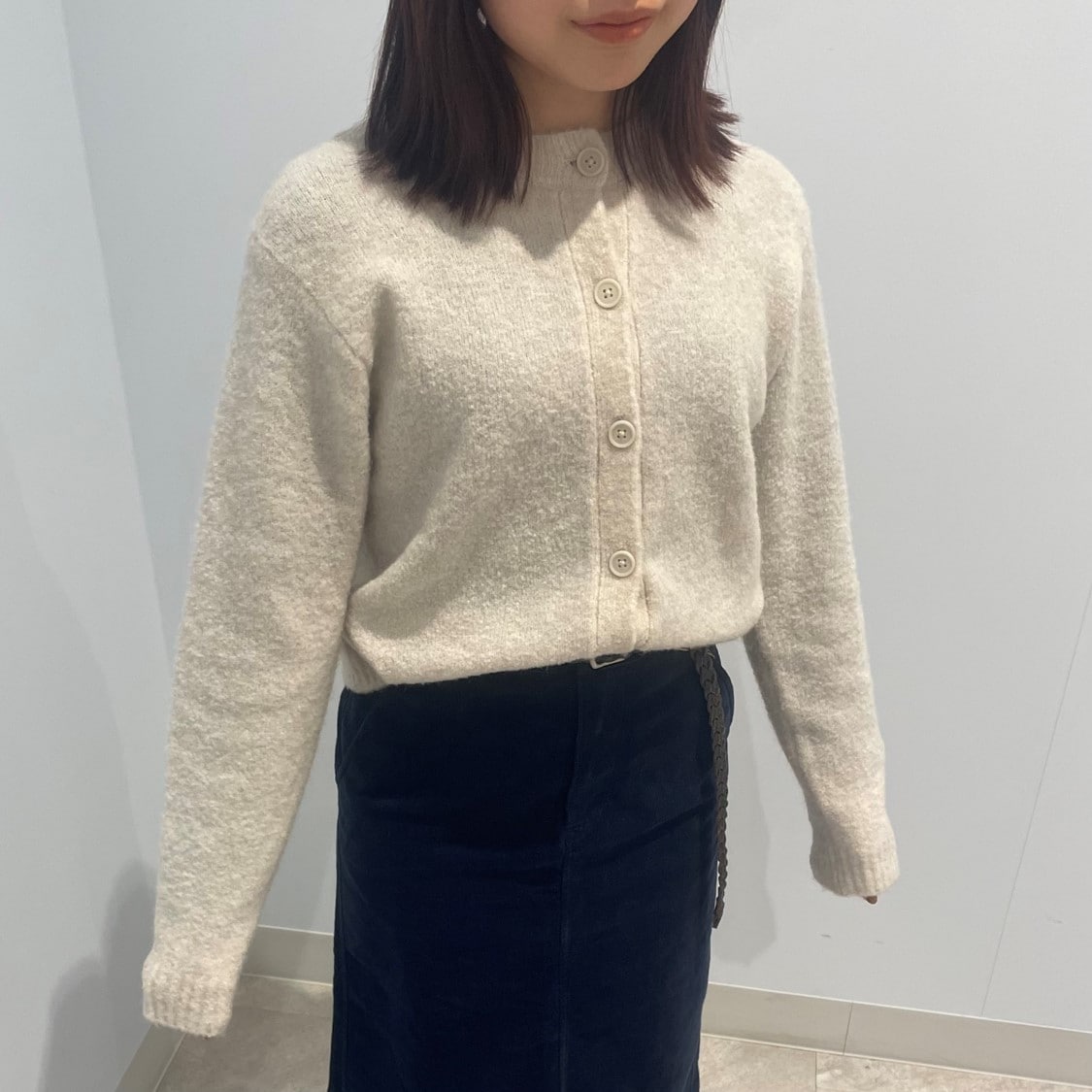 カーディガンはウールの風合いはそのままに軽くて包まれるようなやわらかい肌ざわりが特長です。 ふんわりとした膨らみのある素材で、やさしく包み込まれるような着心地です。 あたたかさを保ちつつ軽やかで、心地良い肌触りに仕上げました。