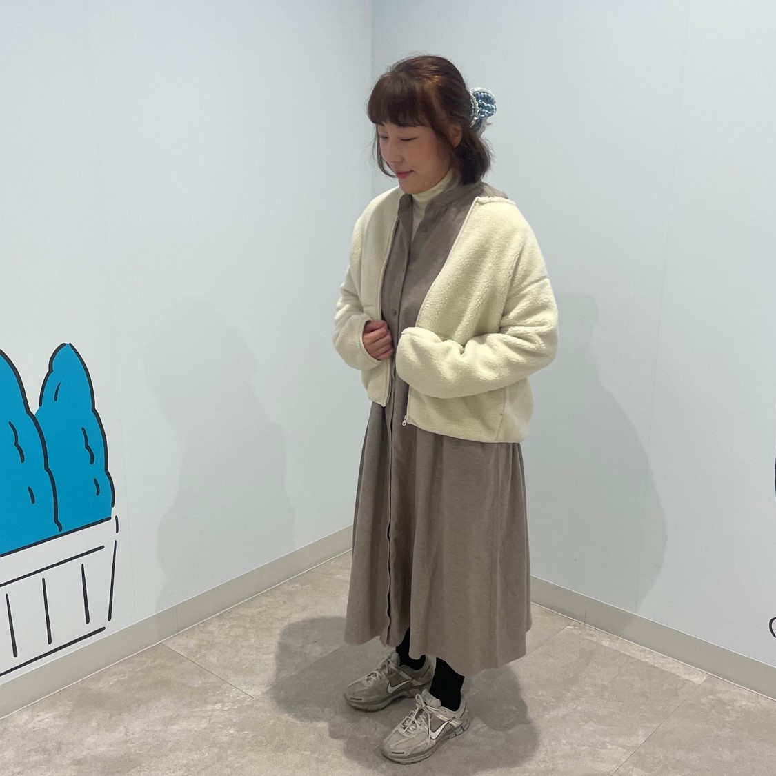 すっきりした首元で、タートルネックやマフラーなど合わせるなど、コーディネートの幅が広がります。