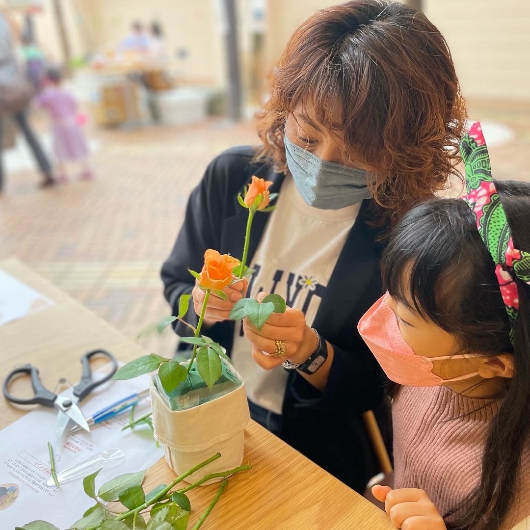 これまでつながる市にも出店してくださったお花屋さん【sun room】さん。今回は『秋のフラワーアレンジメント教室』を開催しました。