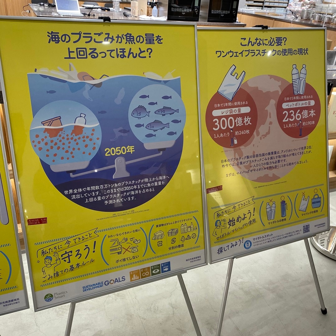 昨日、地下一階キッチンカウンター前にて環境啓発のイベントを行いました。