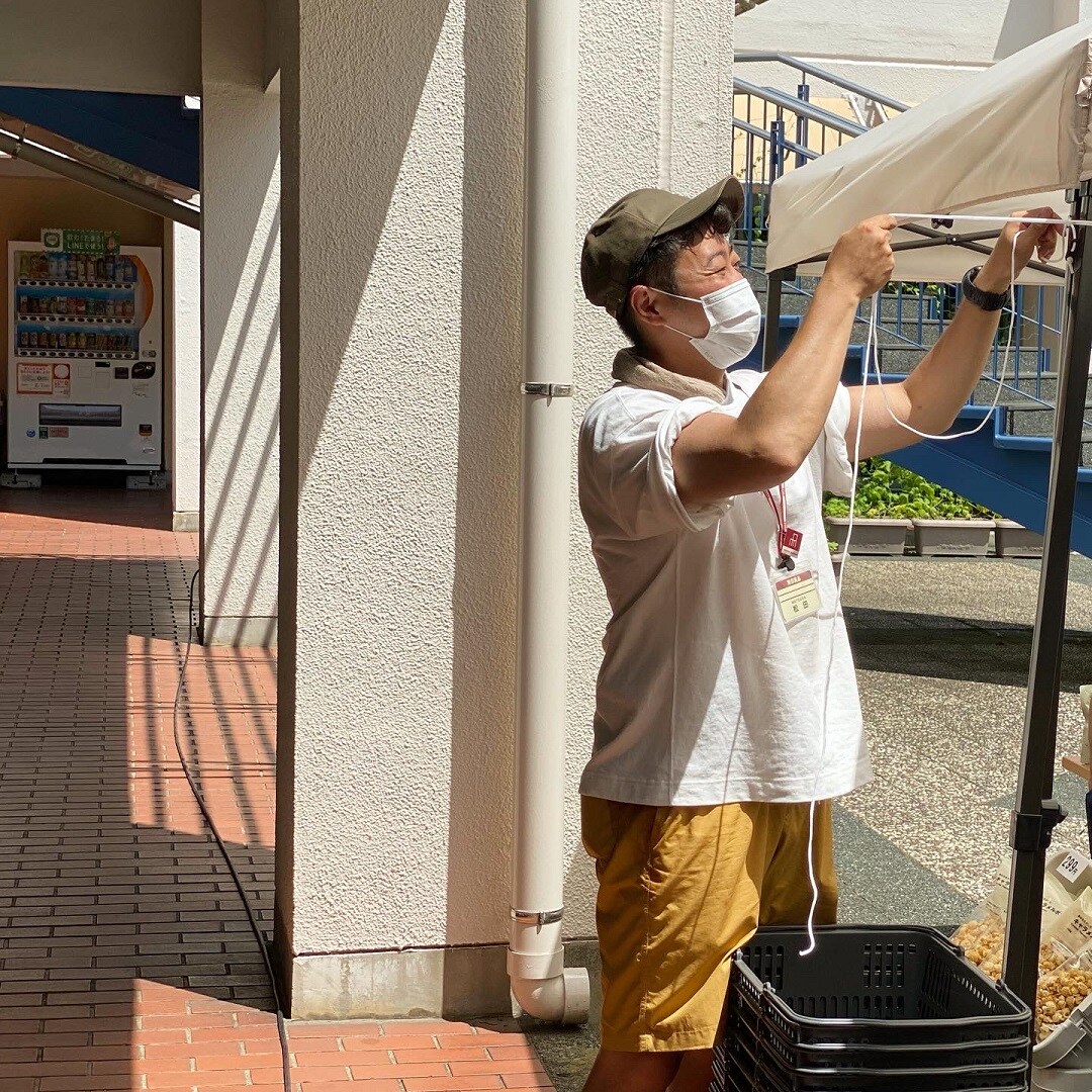 スタッフは回を重ねるごとに真夏の装いになり、最近では短パン帽子スタイルで青空に負けず客さまをお迎えしています。