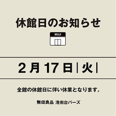 【港南台バーズ】 8/5(火) 休館日のお知らせ | 無印良品 2025/07/29