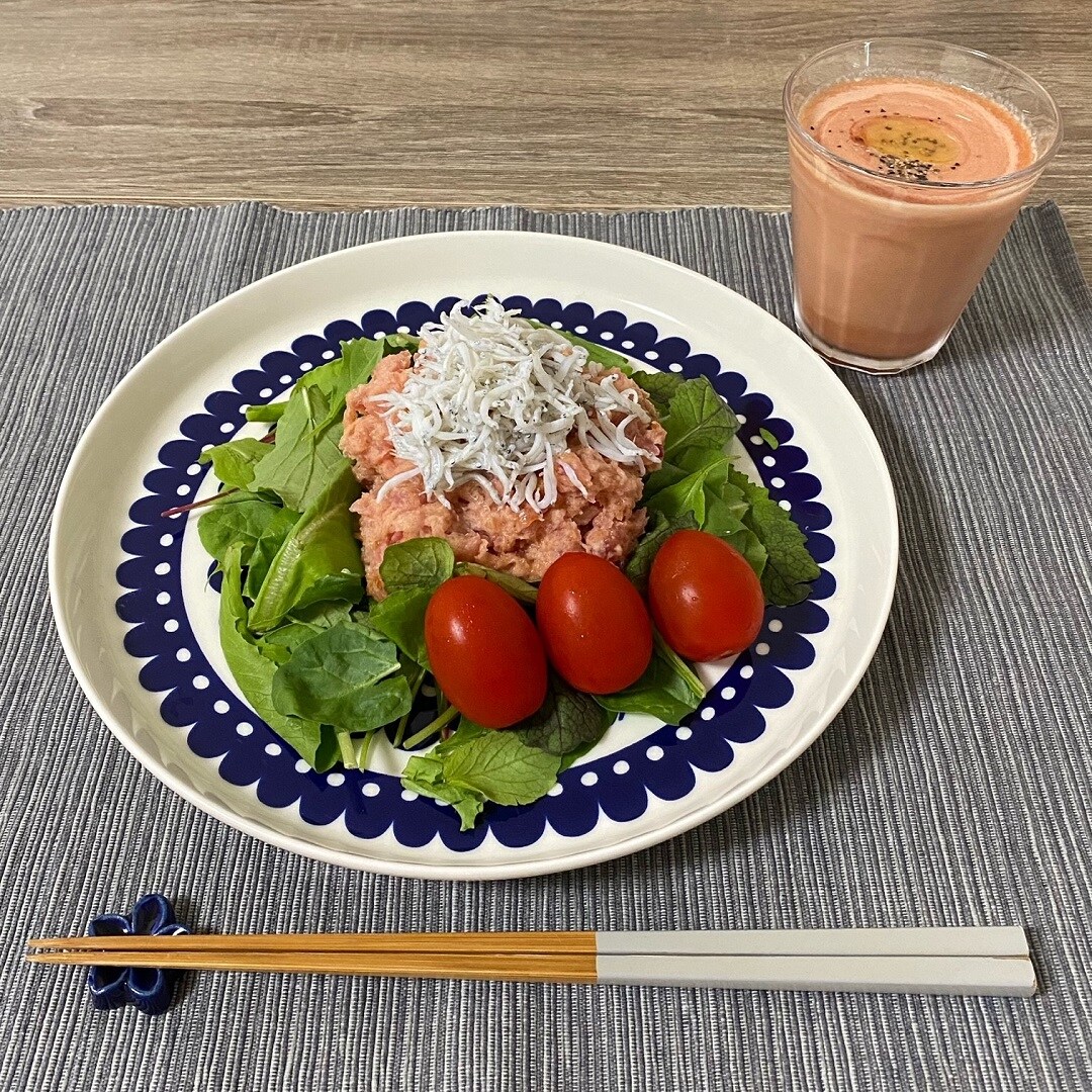釜揚げしらすとまぐろのたたきのサラダ