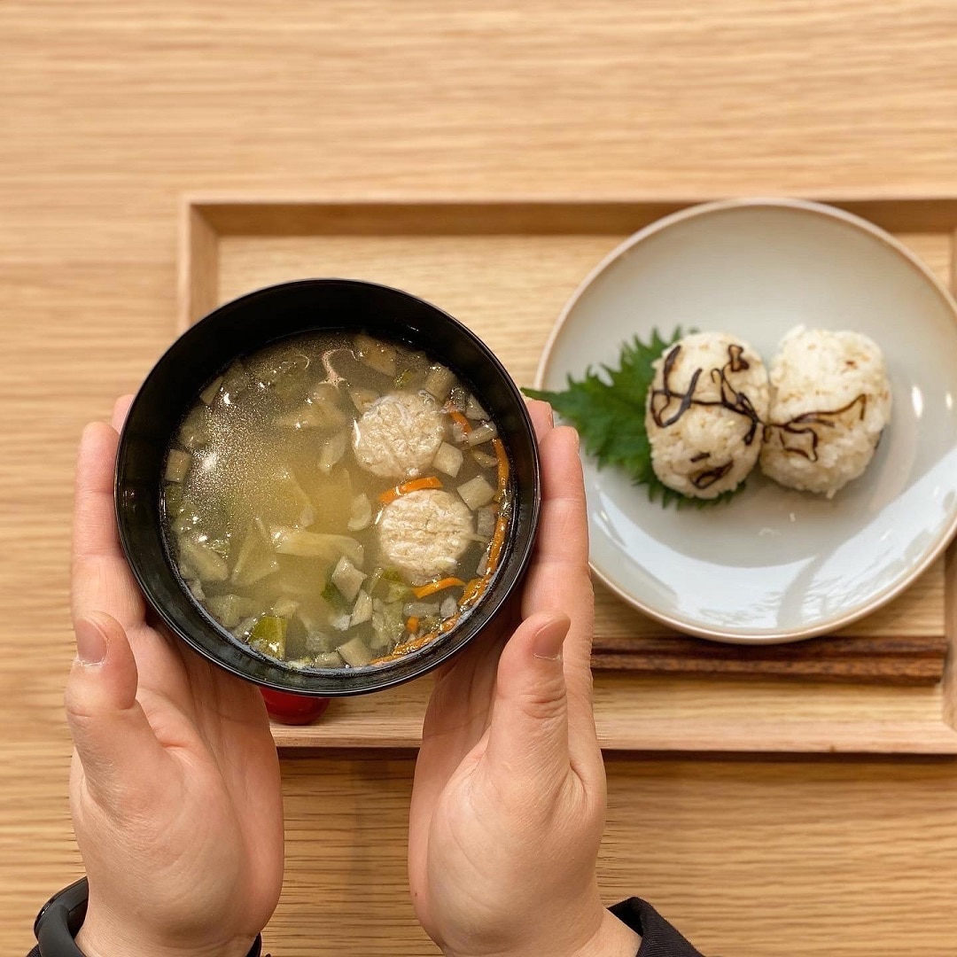 ◾︎素材を生かした味噌汁 ︎鶏つくねと根菜