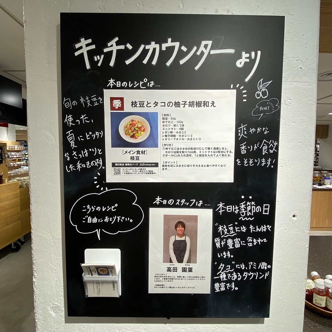 本日のキッチンカウンターでは、「枝豆とタコの柚子胡椒和え」をつくります。