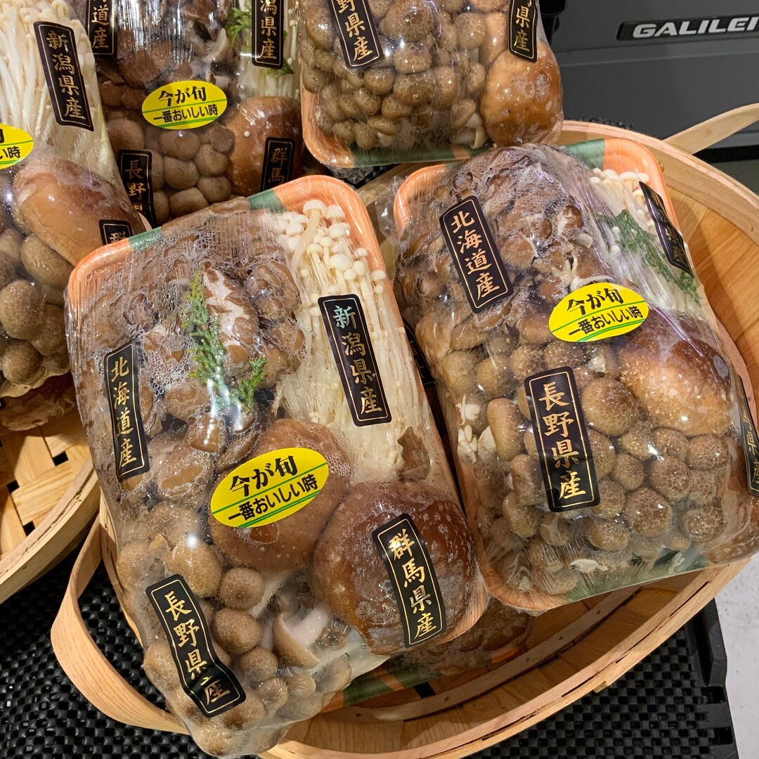 秋の味覚、「きのこセット(大)」。ホイル焼きや煮込み料理などにどうぞお使いください。