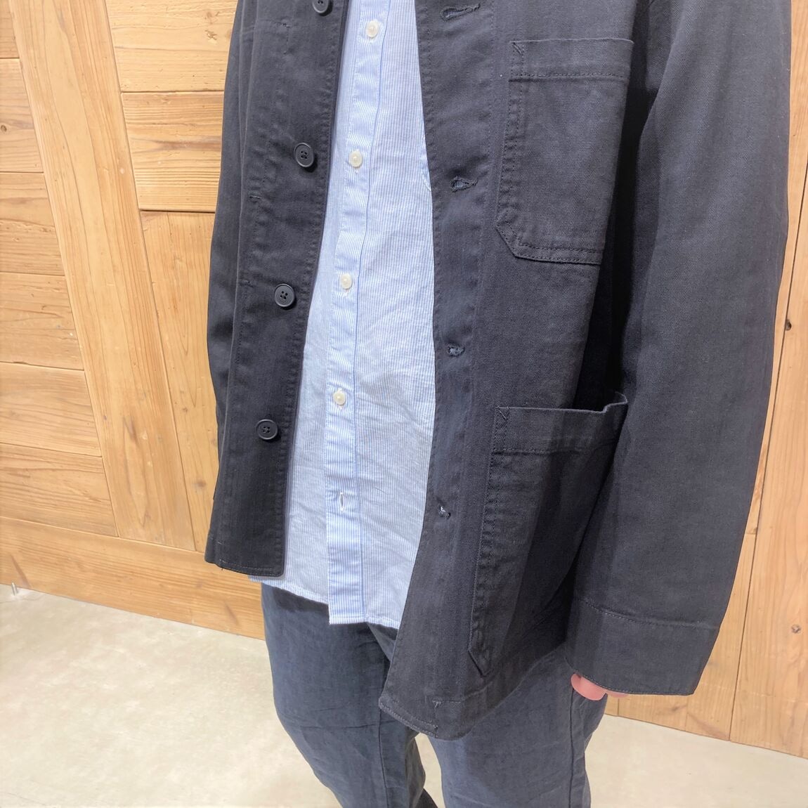 フレンチワークのスタイルをベースにした、ゆとりのあるシルエットのジャケットです。重厚なワークウェアのスタイルでありながら、軽くやわらかい着心地で日常使いしやすい一着です。