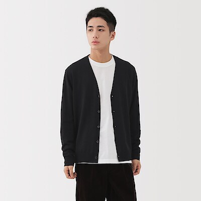 本日は、男性スタッフが考えた、洗えるウールハイゲージVネックカーディガンを使用したコーディネートをご紹介いたします。