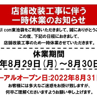 【MUJIcom東池袋】店舗改装工事に伴う一時休業のお知らせ 2022/08/23