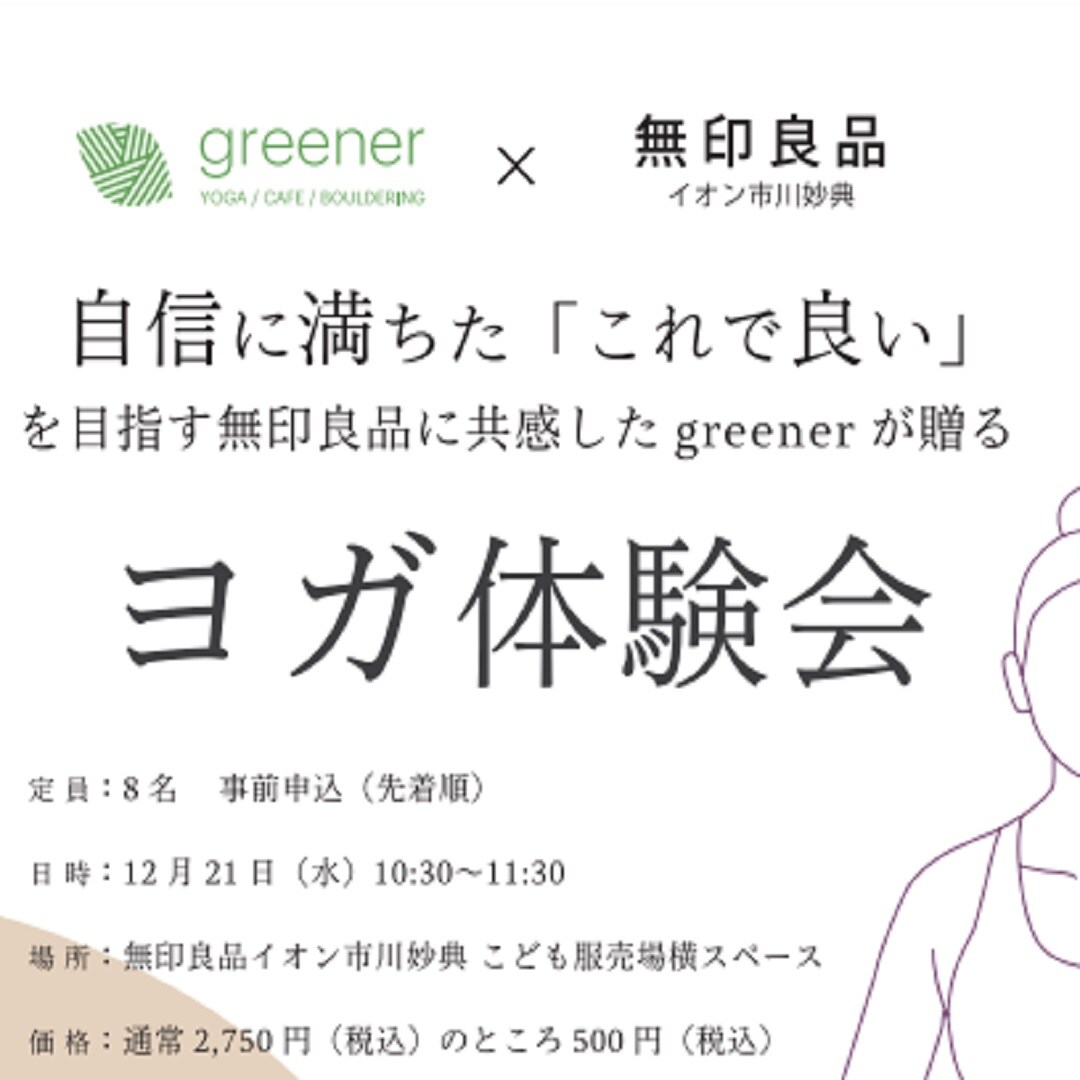 今回は、当店近隣のウェルネスクラブgreenerさんと無印良品のコラボイベントである「ヨガ体験会」についてご紹介します。
