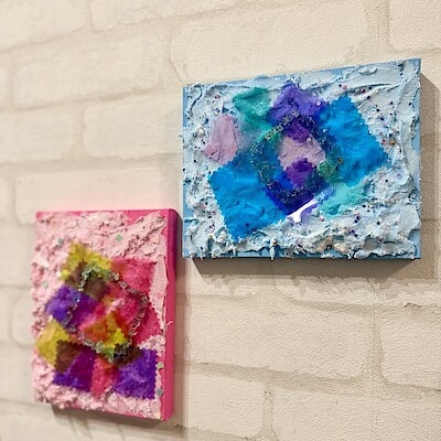 【神戸阪急】2/8(日)-キッズアートクリエイター®︎によるワークショップ-”ふわふわ“から”ガラス“まで異素材がたっぷり【『しかく』であそぶキャンバスArt 】