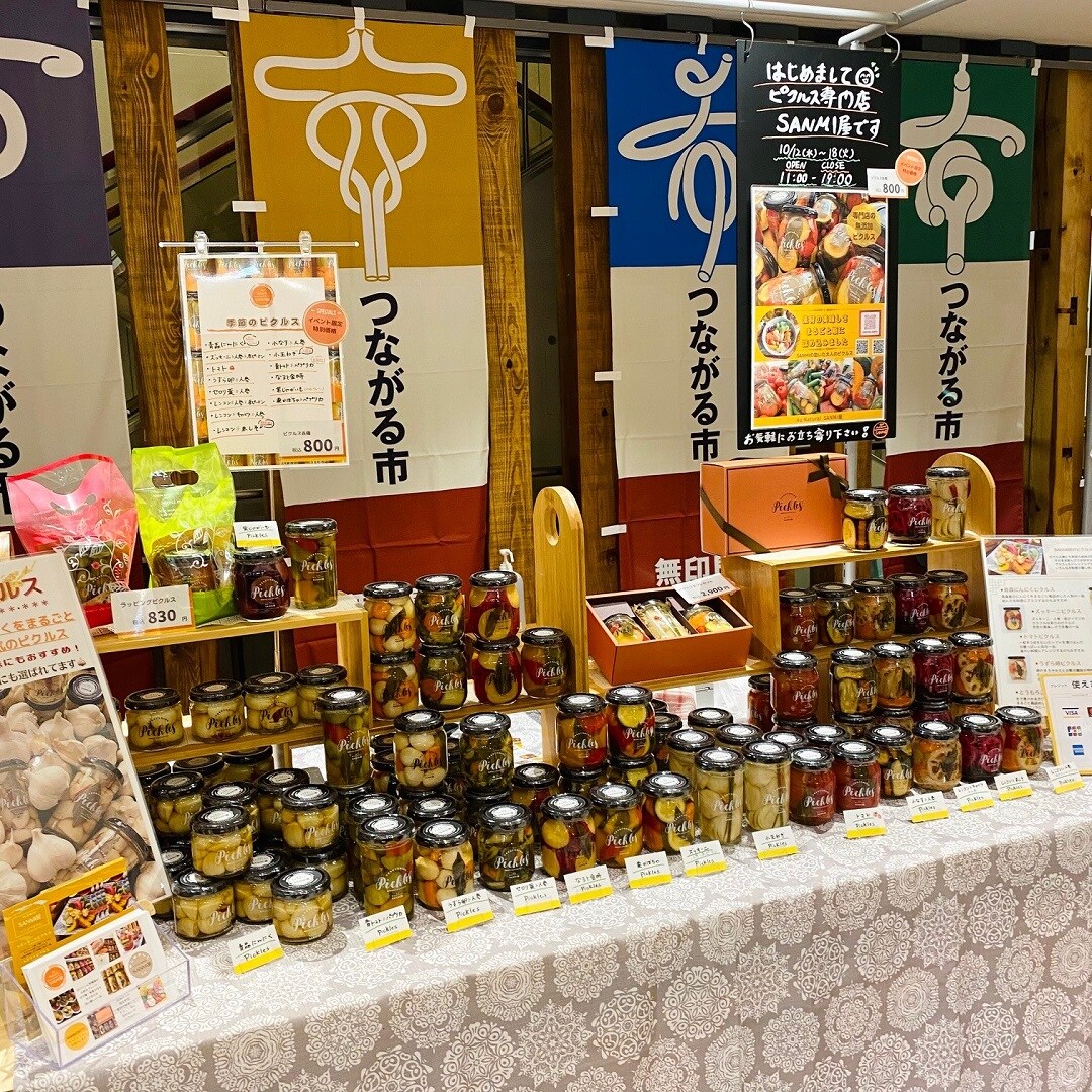SANMI屋さんで販売されてるピクルスは四季折々の国産野菜・素材のおいしさを瓶に詰め込んだ大人のピクルス。