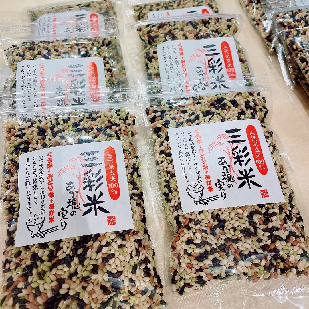 古代米・黒米・緑米の3種類を色合いよく混ぜています。