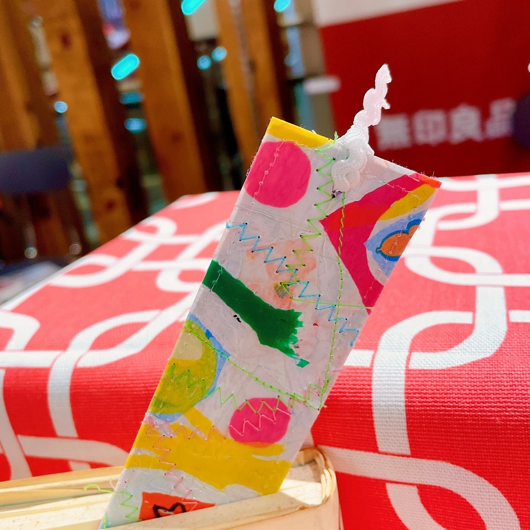 また、オリジナルの生地にカラフルな糸で楽しく線を描いた商品も。