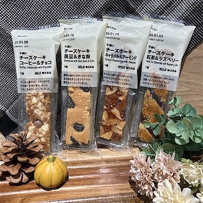【アル・プラザ金沢】今週の試食|不揃いチーズケーキ コーヒー&チョコ/黒豆&きな粉 ・ キャラメル&アーモンド/紅茶&ラズベリー