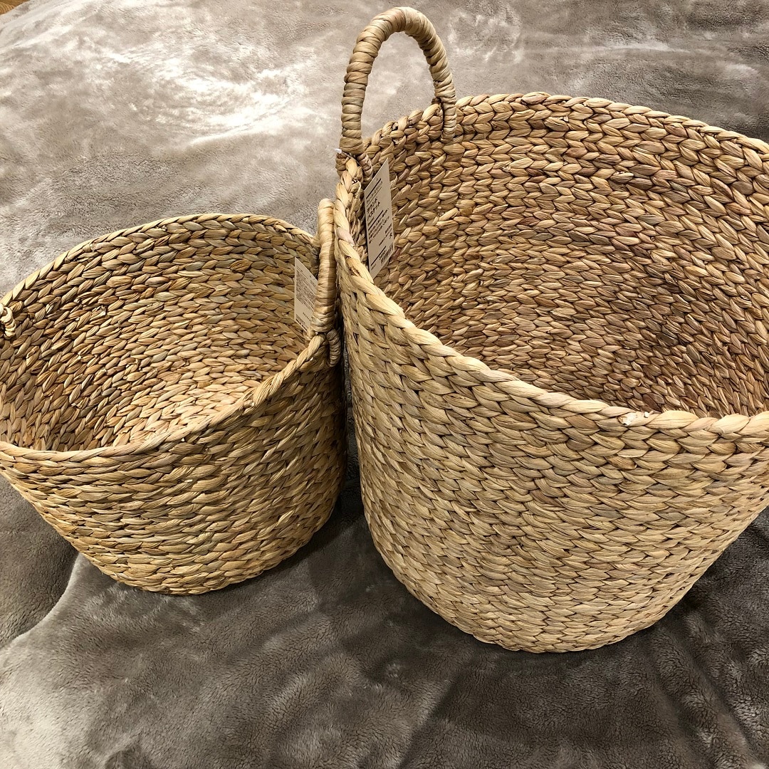ウォーターヒヤシンス 持ち手付 ラウンド バスケット 大 消費税込3,490円