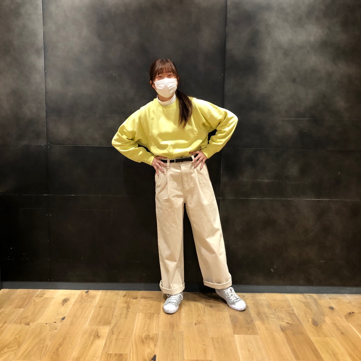 スウェットシャツには、ライトイエローやピンクなどの華やかな色合いがございます。