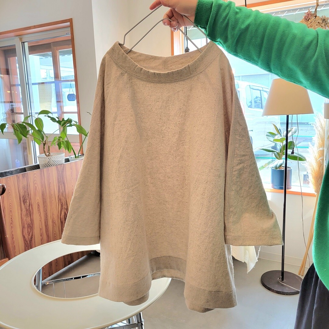 店内にある商品だけでなくオーダーメイドでお洋服をつくっていただくことも可能で、今回はこちらの綿麻のトップスをつくっていただきました。