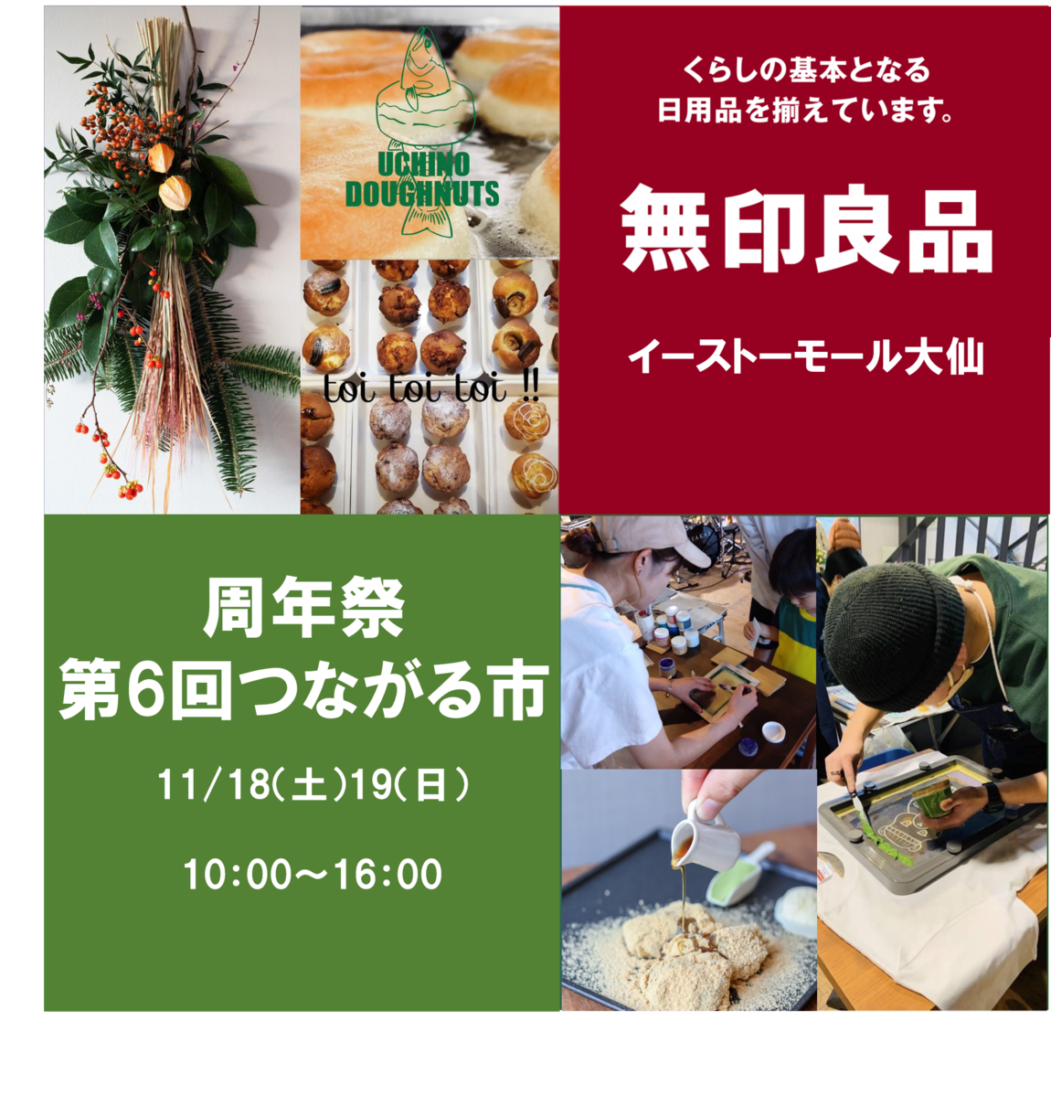 ぜひ皆さまお誘い合わせの上、無印良品イーストモール大仙の周年祭に遊びにいらしてくださいね!