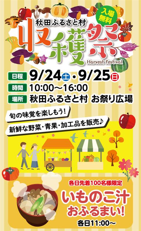 9月24日・25日の2日間で秋田ふるさと村で行われる収穫祭に参加します。