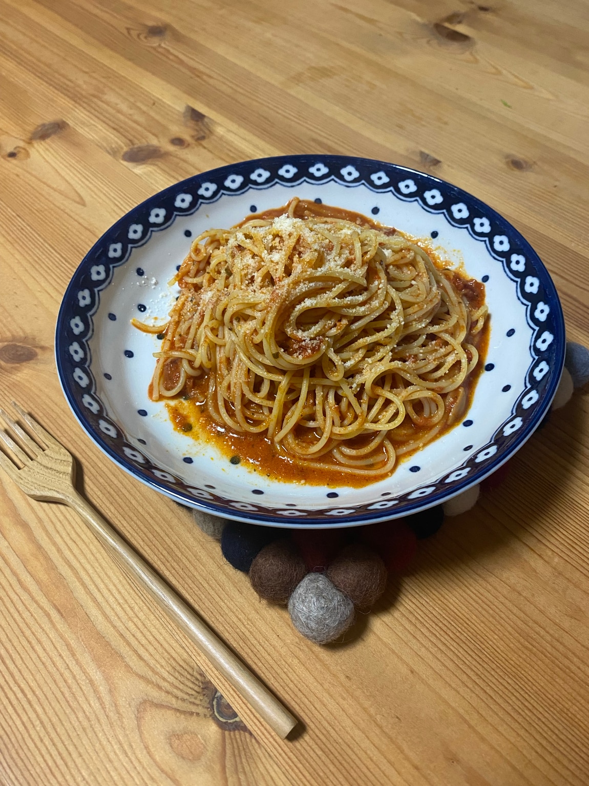 ポモドーロは家に常備してあるパスタと合えて食べました。