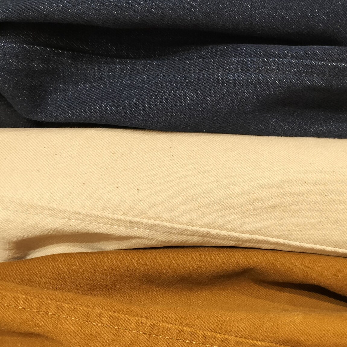 イーストモール大仙スタッフ 身長156センチ 着用商品①木の実から作ったカポック混デニムシャツジャケット ダークネイビー 着用商品②木の実から作ったカポック混フレアスカート ダークマスタード 身長165センチ 着用商品③木の実から作ったカポック混タックパンツ 生成